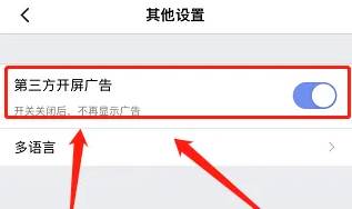 在其他设置页面中,点击关闭“第三方开屏广告”功能开关,即可设置成功。