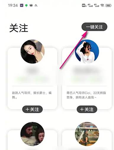 进入关注界面,查看对应的博主,点击右上角一键关注。