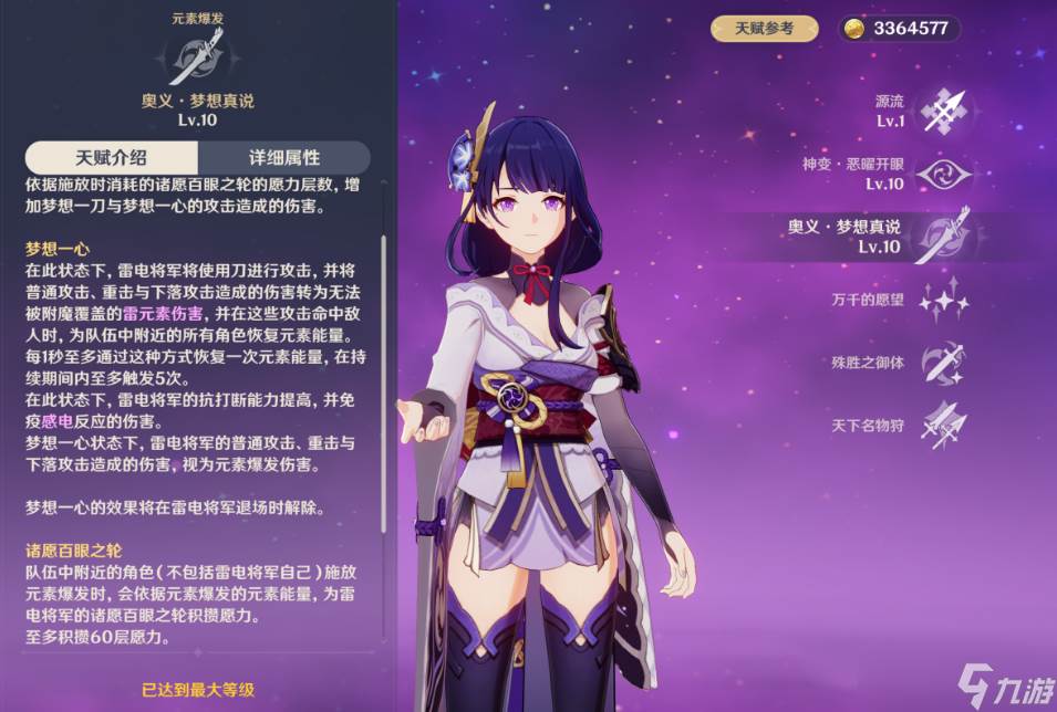 雷神的元素爆发大招是打出一段爆发性的雷伤,并给普攻附魔雷元素,在接下来的一段时间内,雷神获得一定的霸体,自身普攻所造成的伤害变成雷伤,并且伤害提升。同时在雷神开大输出的时候,还可以为后台角色提供一定的充能,能够缓解后台角色的充能压力,做到更好的循环。雷神的大招伤害还会受到愿力的影响,愿力的积累是根据元素能量球来决定的,在队内角色吃球的时候能够攒少量远愿力,并且还有三秒的获取愿力冷却,或者是其他角色先开大,根据消耗能量点的多少来给雷神增加愿力。愿力的累积有一定的上限,最高为六十点愿力也就是满愿力。根据这一点,也就意味着,在雷神开大之前,需要先把其他角色的大开了。