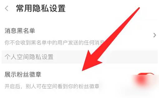 找到展示粉丝徽章的选项,关闭右边的开关即可。