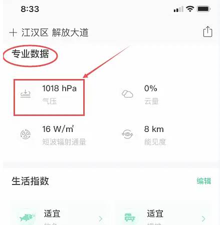 找到专业数据,查看当前城市气压。