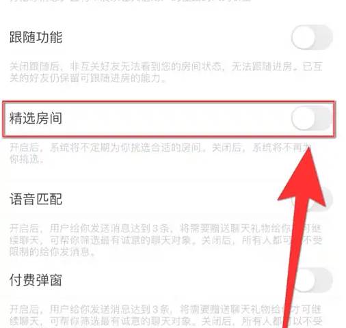 设置界面点击【精选房间】后面的圆点