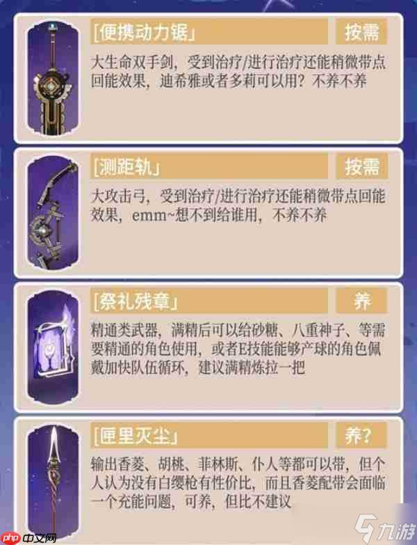 副C或辅助角色(如罗莎莉亚、钟离):根据定位强化防御力、元素精通或控制聚怪能力