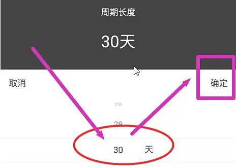 在列表中选择新的天数,点击【确定】按钮即可修改经期周期天数。