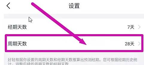 进入经期设置窗口点击【周期天数】选项。