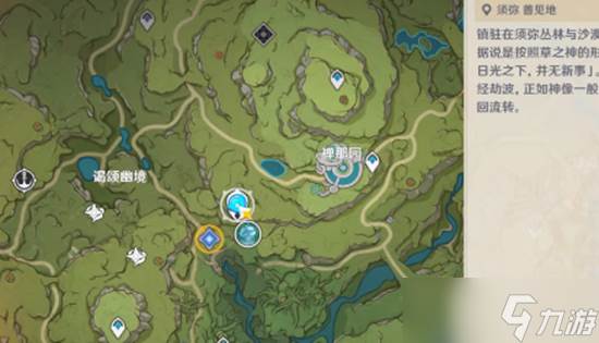 1、打开须弥善见地的地图,传送到水天丛林那里去。