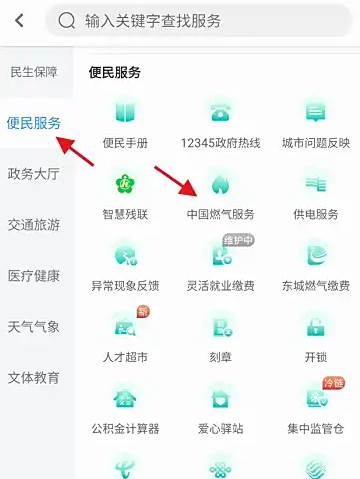 进入更多应用,找到便民服务,找到中国燃气服务,点击中国燃气服务进入