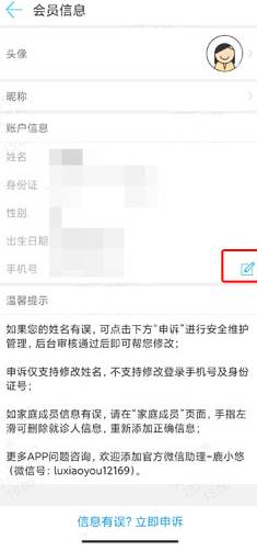 2、在会员信息页面中点击手机号右侧的编辑按钮;
