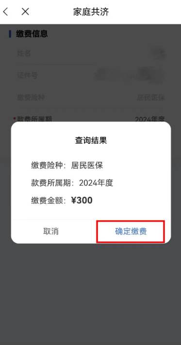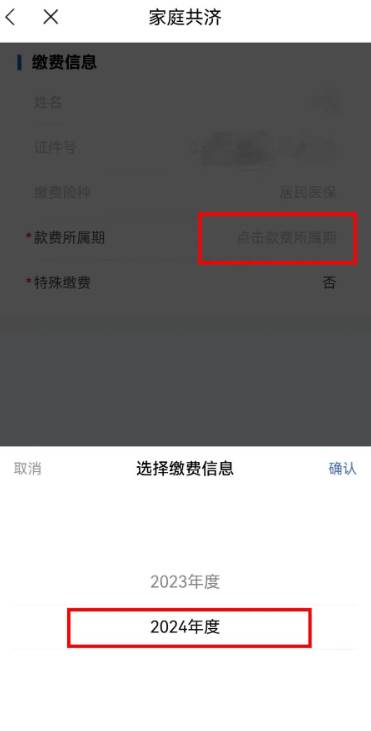 2.绑定完成后,在“账户缴费”→“居民医保”,选择需要代缴的家庭成员及费款所属期(2024年度),完成缴费操作。
