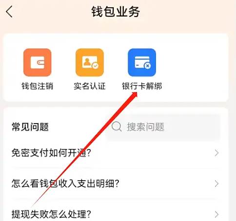打开安卓版货车帮货主的钱包业务页面,点击银行卡解绑。