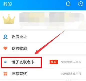 我的界面,点击“饿了么联名卡”。