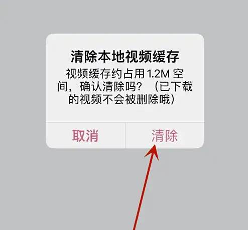 打开清除本地视频缓存的对话框点击“清除”选项。