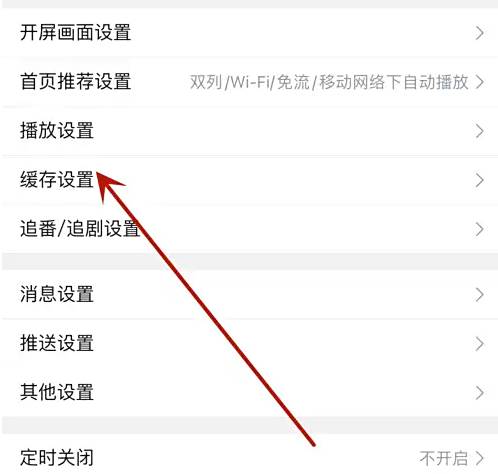 打开设置的界面点击”缓存设置“选项;