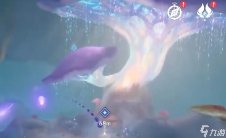 此时触媒没能量的话,先朝东北方向看,到发光蓝色小球边上,交互激活拿到充能,然后再看到东南方向的淤泥,用刚才充能好的触媒把第一处淤泥清除掉。接着朝南走,看到下一处淤泥,再次清理掉淤泥,最后一处淤泥在西方向,经过树根穿过河流,来到对岸石头上的淤泥旁,清理完毕最后一处淤泥。全部清理完毕,跟随任务的指引,回到巨大蘑菇赞玛兰的边上,交互进行对话,接着需要去帮助它的同组。先朝着西方向走,看到任务指引点的小蘑菇,为小蘑菇进行充能。接着看向东边,在校地图上有一个山体挡住下一个小蘑菇地点,需要绕一下来到第二个小蘑菇处进行充能。向西找到第三处小蘑菇进行充能,随后是东北方向的第四个小蘑菇。