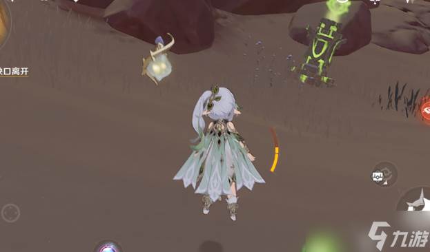 采集完之后打开地图并传送到镔铁沙丘正上方的那片区域,传过去之后朝着正西方向直飞并在合适高度落在圆形发光阵法的左侧,在发光阵法左前方的紫色木板后面就可以捡到一个玉帛。接下来切出地图并传送到三运河之地正左侧的那片区域,角色落地之后从正北方向的三角空心石门钻进去,进石门之后左拉视角并翻过挡路的大树藤,翻过树藤后就可以在壁画底部的石台中采到一个玉帛。