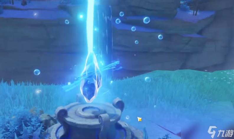 解锁触发完动画之后,沿着北边的路往前走,顺着山体来到西北方向的任务指引点处。找到第二个祭坛,用键纹把祭坛解锁掉。看完第二个祭坛的解锁动画之后,传送回到珊瑚宫下边的传送锚点,和身后的路子对话。对完话之后,看向小地图的东南方向,向下看到下面一个漩涡一样的大坑,直接向下跳进去就能进入渊下宫。下来之后往前游到岸边,来到任务指引点自动点亮锚点即可成功解锁渊下宫并完成任务。
