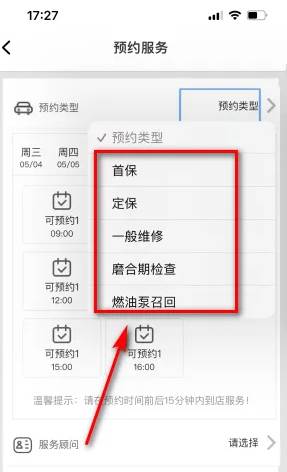 再在【预约服务】页面设置维保的时间,点击【预约】功能,这样就能完成操作了。