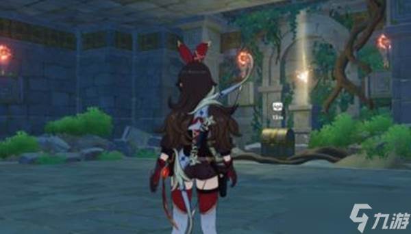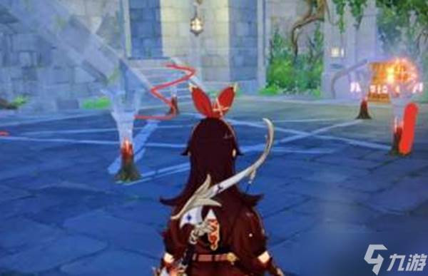 2、接着来到第一个塔的位置,然后需在蓝色柱子右边位置将火把点燃