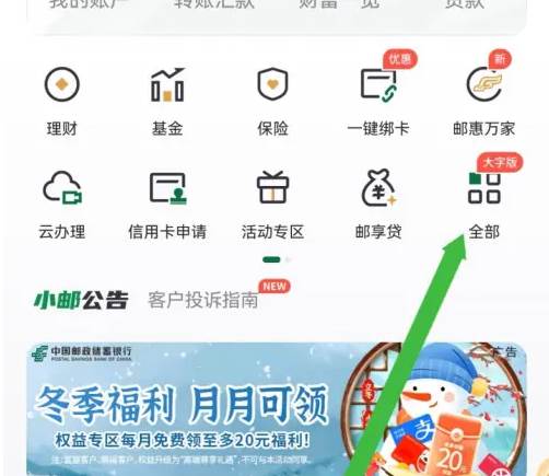 首先,进入邮储银行软件页面,点击首页进入;