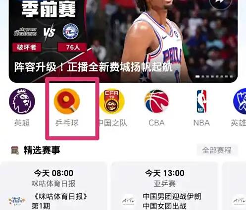 最后点击页面上的【亚乒赛】进入即可观看直播