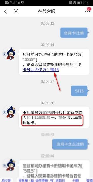 页面弹出可办理销卡的信用卡尾号,输入提示的信用卡尾号。