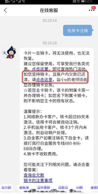页面弹出信用卡注销操作提示,根据提示内容,点击请点击这里。