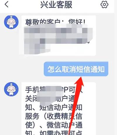 在兴业客服页面,发送“怎么取消短信通知汽欧”。