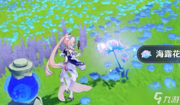 采集完之后打开地图并传送到埃尔顿海沟正上方的那片区域,角色落地之后朝着正南方向的破旧齿轮游动。游过去之后右拉视角就可以在一片大荷叶的正下方捡到一朵海露花,捡完之后切出地图并传送到秋分山西侧正左方的那片区域,角色落地之后绕到右前方的大树洞前面。绕过去之后就可以看到一位名叫泽娜的小女孩。与这位小女孩对完话之后,就可以使用摩拉在其商铺中将十朵海露花买走。接下来从左手边的水域竖直往下潜,游动到最底部之后就可以在大海螺的旁边收获到一朵海露花。