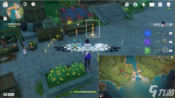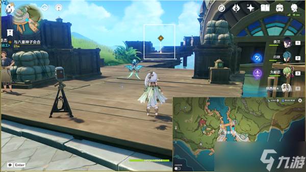 4、往东南方向走,来到码头上和八重神子对话。