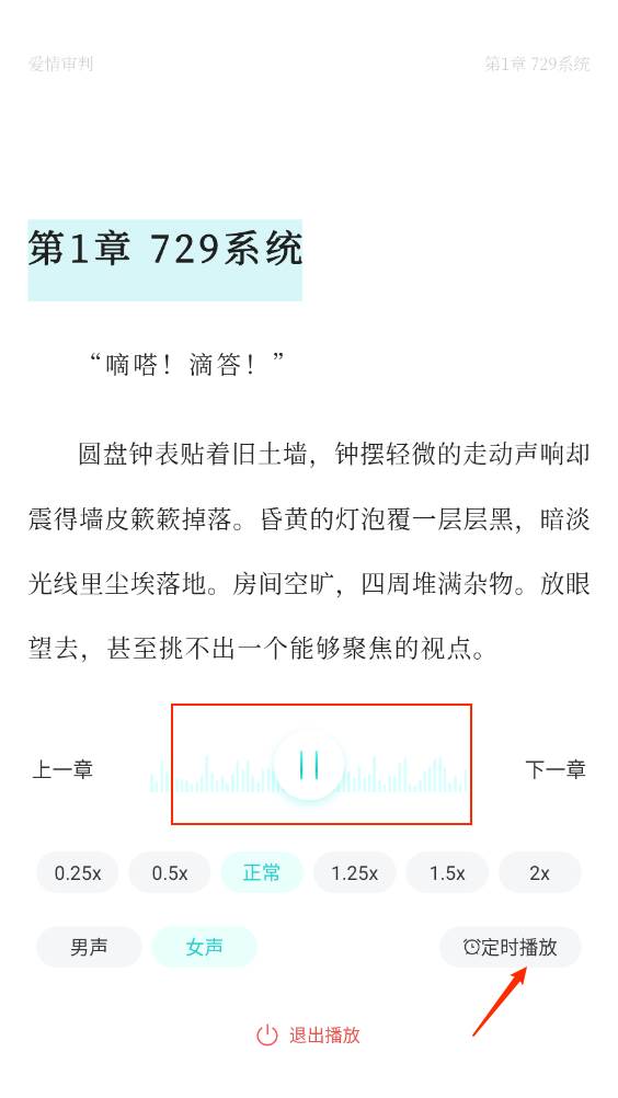 4、如图所示,即可开启听书体验了,还可以进行设置定时听书、播放速度等。