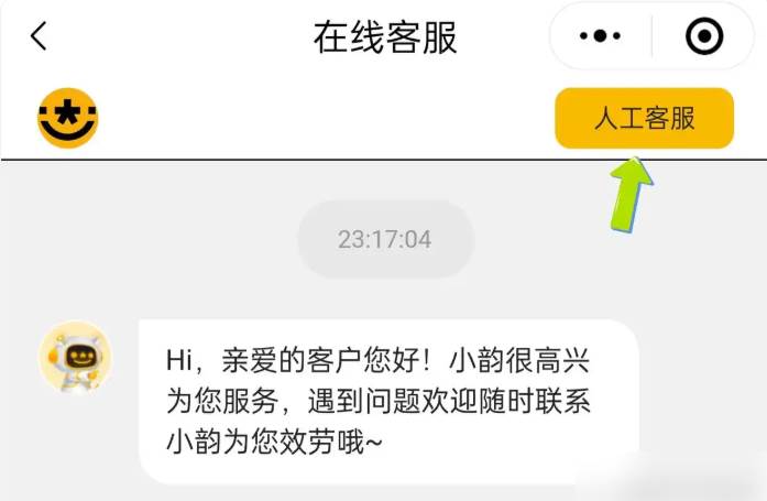 5、进入在线客服页面,点击“人工客服”按钮。准确提供正确的快递单号、收件人信息,就可以联系韵达快递客服人员进行查询寄件人信息。