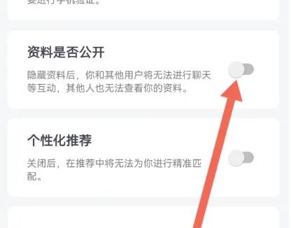 来到账号与安全,然后把【资料是否公开】的按钮关闭即可。