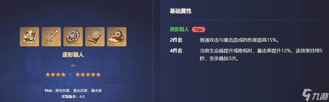 逐影猎人4件套:提升普通攻击与重击伤害-过渡套装
