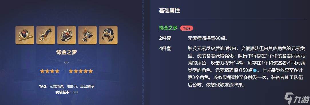 饰金之梦4件套:提升元素精通和攻击力,目前测试中表现优异-过渡套装