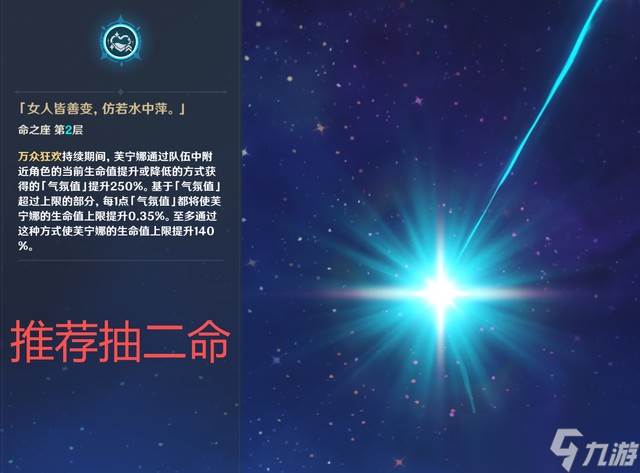 尤其是0命的芙芙,你首先得满足4万血的基础,吃满天赋“无人听的自白”的效果,圣遗物一般都推荐生生暴。2命之后,才可释放4万生命值要求,可以充水暴,也可以充生暴。有条件的朋友,至少抽个2命。没条件的朋友,0命都得抽一个,真的百搭,至于再往高了去,其实没必要推荐了,平民玩家够不到,氪佬玩家随意抽。