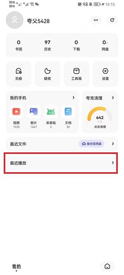 第二步:然后在界面中,下方会有一个【最近播放】功能栏,然后我们可以点击此处进入到最近播放页面中(如图所示)。
