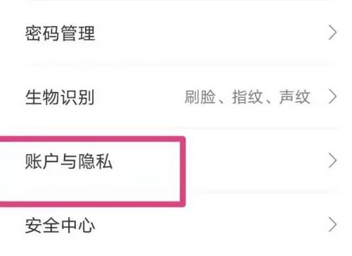 进入新页面,点击“账户与隐私”。