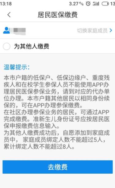 可以选择为家人缴费,低保户、学生需要去社区缴费。