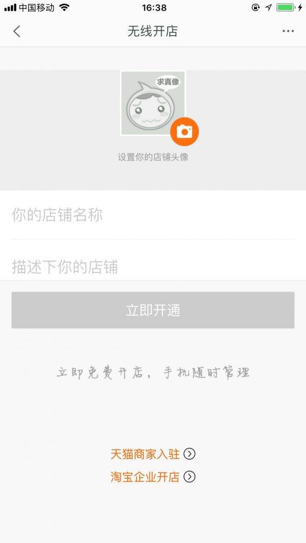 第二步:输入店铺名称和店铺简介,上传店铺头像后点击“立即开通”