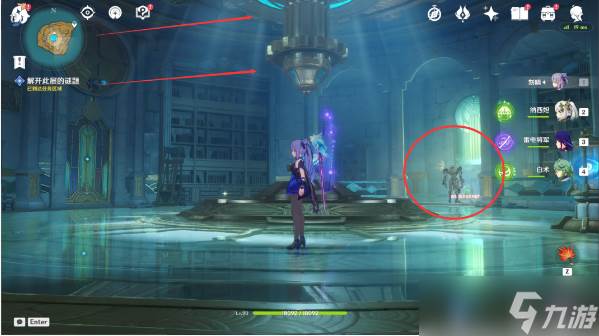 11、往前走,在金色光点内的机关交互,之后要找到三个“根源之轮”,先交互前往下一层;