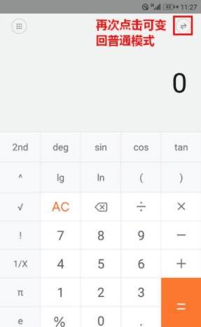 打开小米计算器的主界面以后,如果当前是普通模式,点击右上角的切换图标将它变为科学计算器模式。
