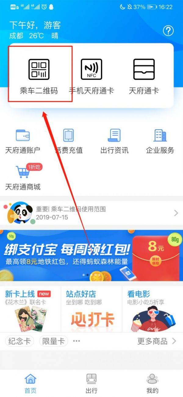 3.登录后,点击app主页中的“乘车二维码”,即可进入成都公交乘车码界面;