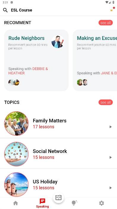 ESL Course英语软件是一类帮助母语非英语的学习者提高英语水平的应用,涵盖了从零基础到高级水平的不同学习需求。无论是想要系统学习、提高专项技能还是寻找语言交换伙伴,都能在这些软件中找到合适的选择,快来下载体验吧。