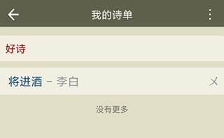 2、点击进入我的诗单页面,红字的就是自己创建的诗单,蓝字就是添加到诗单中的诗词。