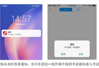 2、发布试卷,监考老师发布试卷后,手机端“学习通”会出现如下提示: