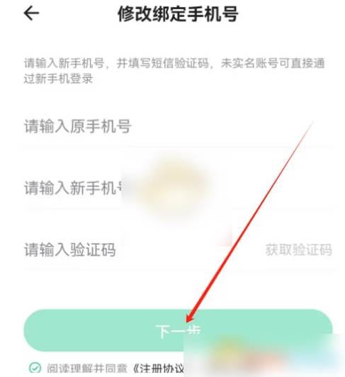 3、修改绑定手机号页面,输入修改信息,点击下一步即可。