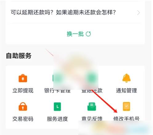 2、客户服务页面,点击修改手机号。