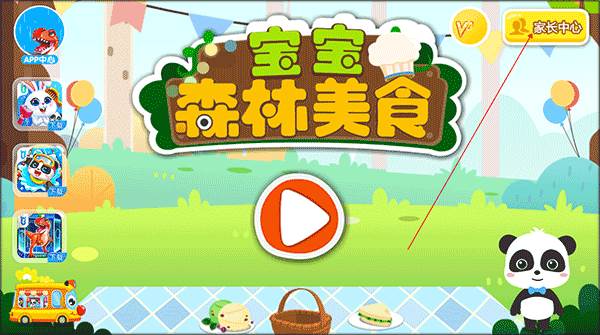 1、下载安装好宝宝森林美食,打开软件的主页面,点击右上角的家长中心。