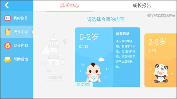 3、点击成长中心选择宝宝年龄段的模式即可。