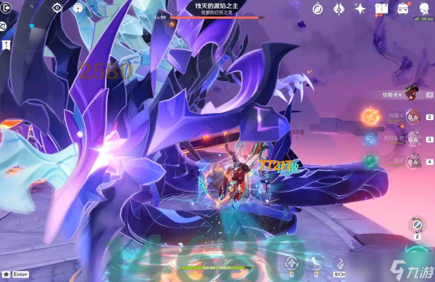 招式四是它会冲进场进行斩击并留下灼烧痕迹,这招常见在追踪弹攻击后释放,斩击结束后它会随机传送。前四个攻击会交替进行,当攻击两到三次后会释放次数盾,每次场地变化次数盾招式不同,场地一的招式有两种。招式五是蚀灭的源焰之主转身释放三个次数盾和迷雾,三个次数盾在间歇性的攻击两次,如果没有在规定时间内击破三个次数盾,它会释放一个追踪攻击。队伍中最好带纳塔夜魂机制角色,利用元素攻击或者夜魂攻击打破次数盾,击破三个盾厚它会瘫痪扣除一定比例的血量,瘫痪时间为十几秒,如果有火元素旅行者或者玛薇卡,释放战技后会直接驱散迷雾,如果没有破盾被追踪攻击锁定后则需要一直移动,攻击范围停止后闪避两次就能躲开。